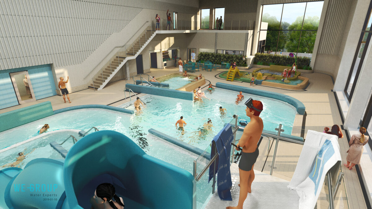 Nybyggnation av fullskaligt badhus med 50-metersbassäng med 10 banor, familjbad med rutschkana, dubbla undervisningsbassänger med höj- och sänkbara bottnar, relaxavdelning samt gym och café.
