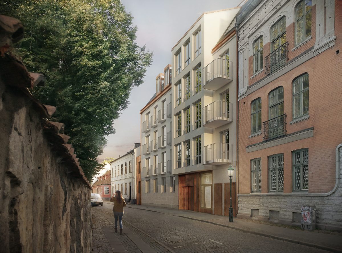 Parkeringsplatsen på Stora Algatan 6, i hjärtat av Kvarteret Sankt Mikael i centrala Lund, bygger Betonmast Malmö ett modernt femvåningshus med 19 exklusiva lägenheter. Det vitputsade huset ska smälta samman med befintliga kulturhistoriska byggnader och bli en naturlig del av gaturummet. Samtliga lägenheter har balkong, uteplats eller takterrass. I källaren byggs ett halvautomatiskt garage med 28 effektiva bilparkeringslösningar.